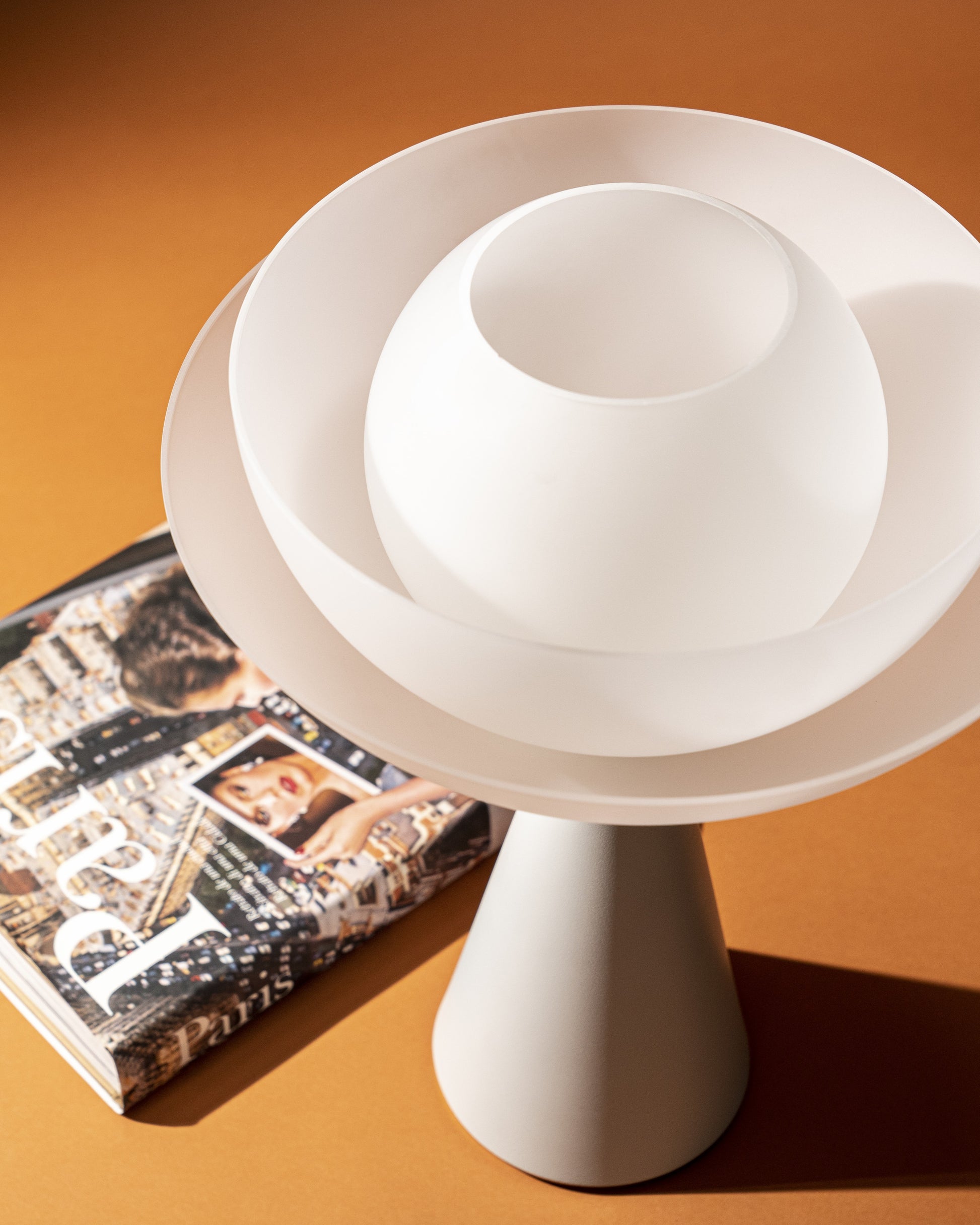 Inspired by the elegance of the lotus flower, a symbol of purity and rebirth, Lotus stands out for its perfect balance between simplicity and sophistication. Every element of the lamp is designed to convey harmony and lightness while maintaining a strong scenic presence. The matte, textured finish of its surface adds depth and character, enhancing the interplay of light and shadow that gently spreads through the surrounding space.