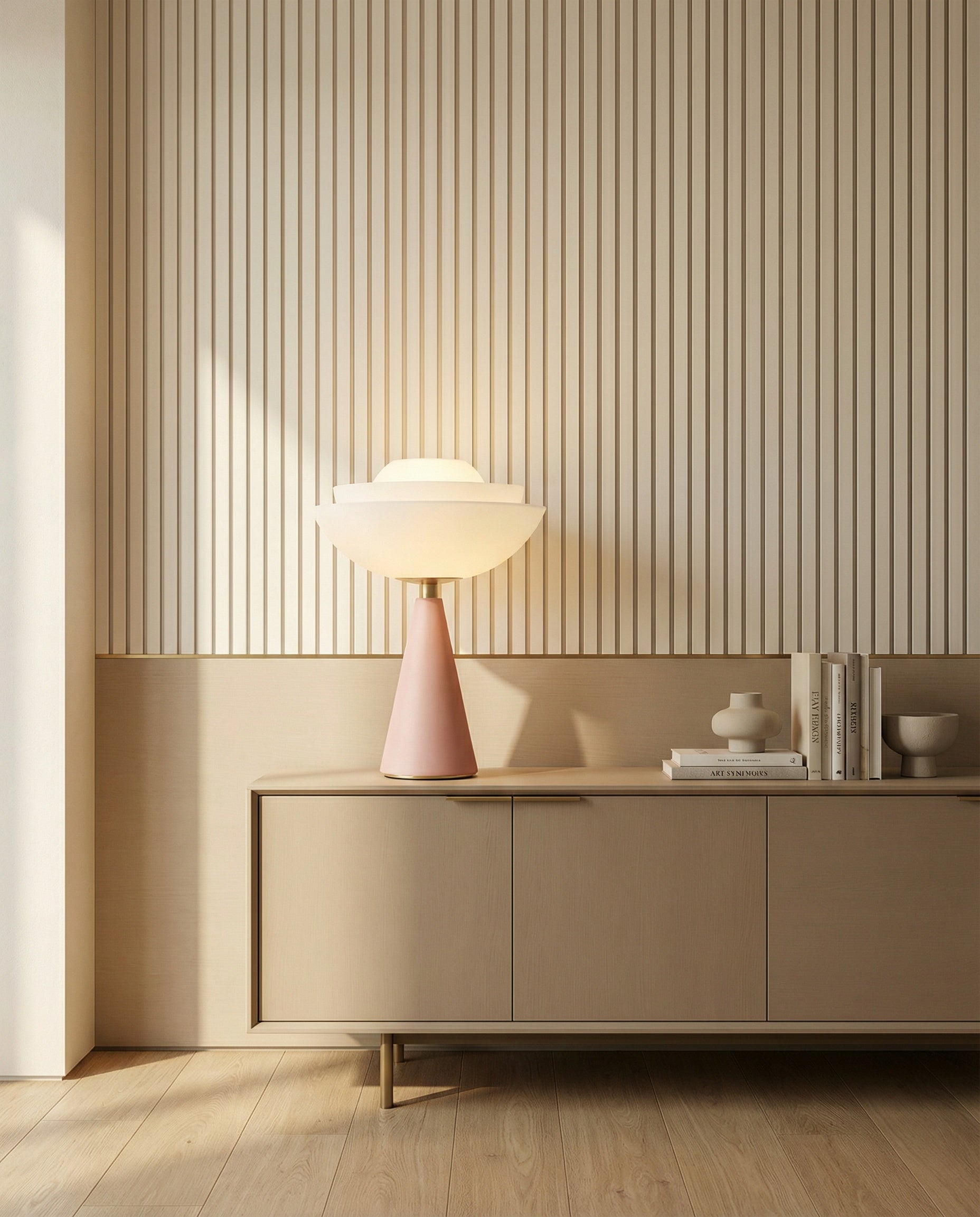 Inspired by the elegance of the lotus flower, a symbol of purity and rebirth, Lotus stands out for its perfect balance between simplicity and sophistication. Every element of the lamp is designed to convey harmony and lightness while maintaining a strong scenic presence. The matte, textured finish of its surface adds depth and character, enhancing the interplay of light and shadow that gently spreads through the surrounding space.